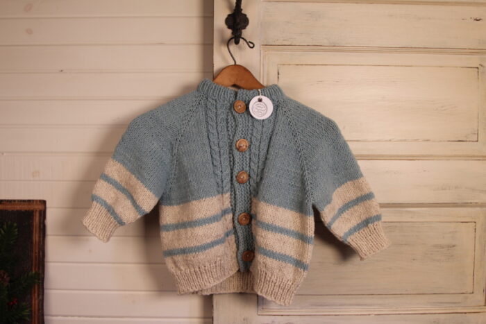 Hand Knit Child Sweater (Blue and Cream; Size 4-6)