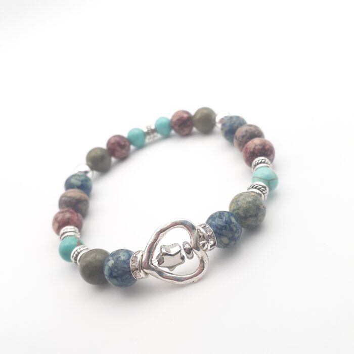 Turquoise Howlite and Colourful Stone Beads Heart and Star Stretch Bracelet