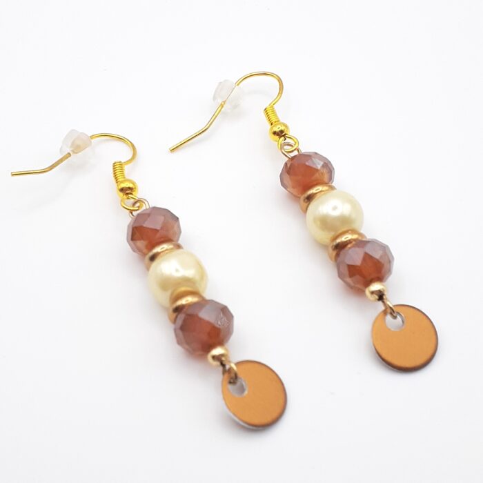 Topaz-Brown Colour Faceted Crystal and Pearl Beaded Dangle Earrings