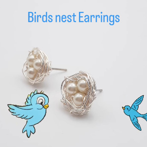 Tiny Silver Colour Wire Wrapped Pearls Bird Nest Post Stud Style Earrings