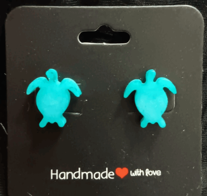 Turquoise Stone Nugget Suede Leather Bracelet and Turtle Earrings Set