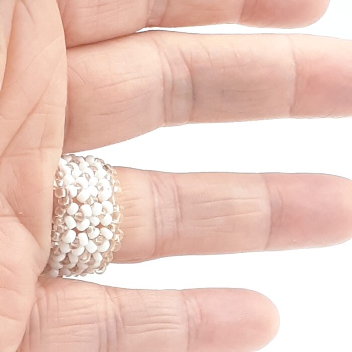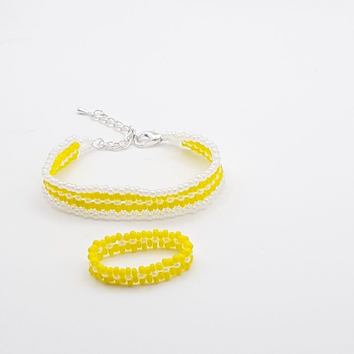 Yellow and White Seed Bead Handwoven Bracelet And Ring Set