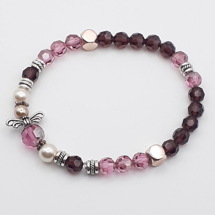 Crystal and Pearl Angel Stretch-style Purple Bracelet