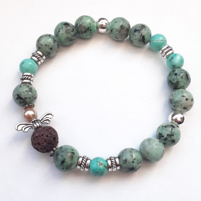 Green spot jasper gemstone beaded Little Lava Angel Stretch Bracelet