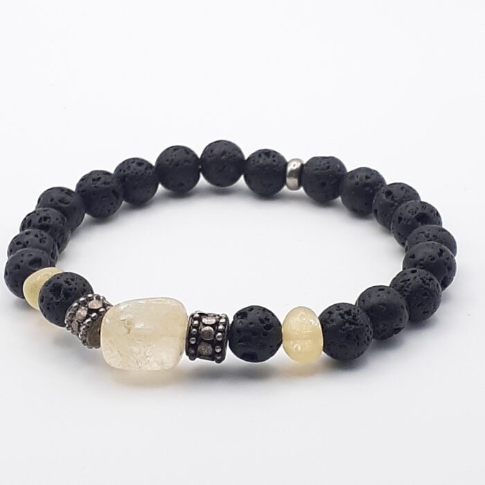 Genuine Citrine Nugget Gemstone and Black Lava Stone Stretch Bracelet