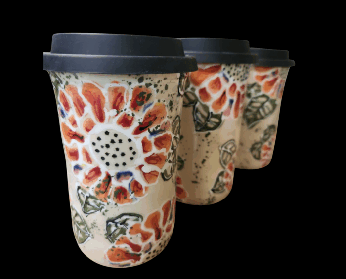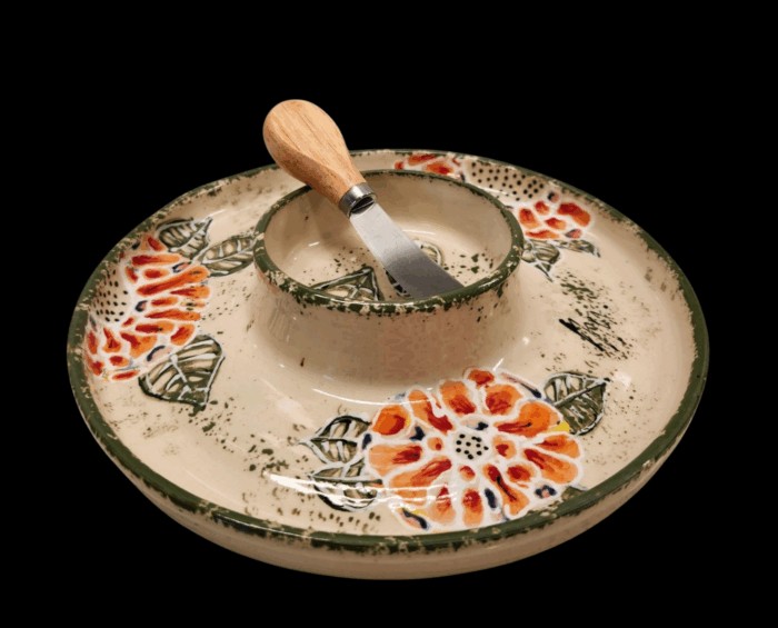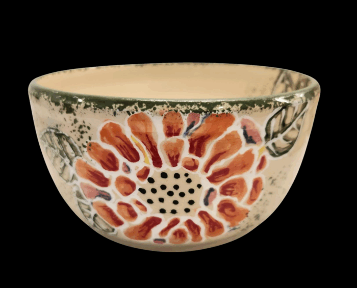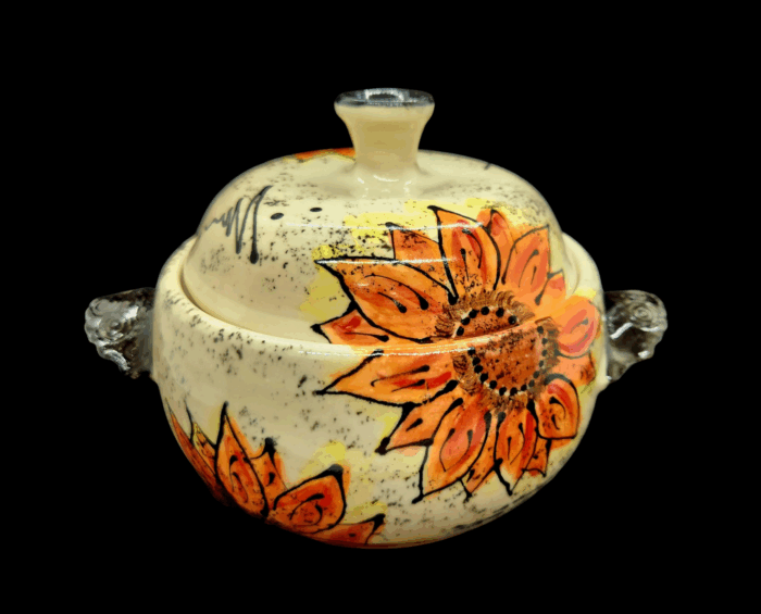 Covered Casserole Dish With Wooden Spoon – Orange Sunflower Motif