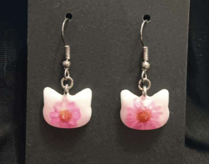 Cat Dangle Earrings (Pink Flower)