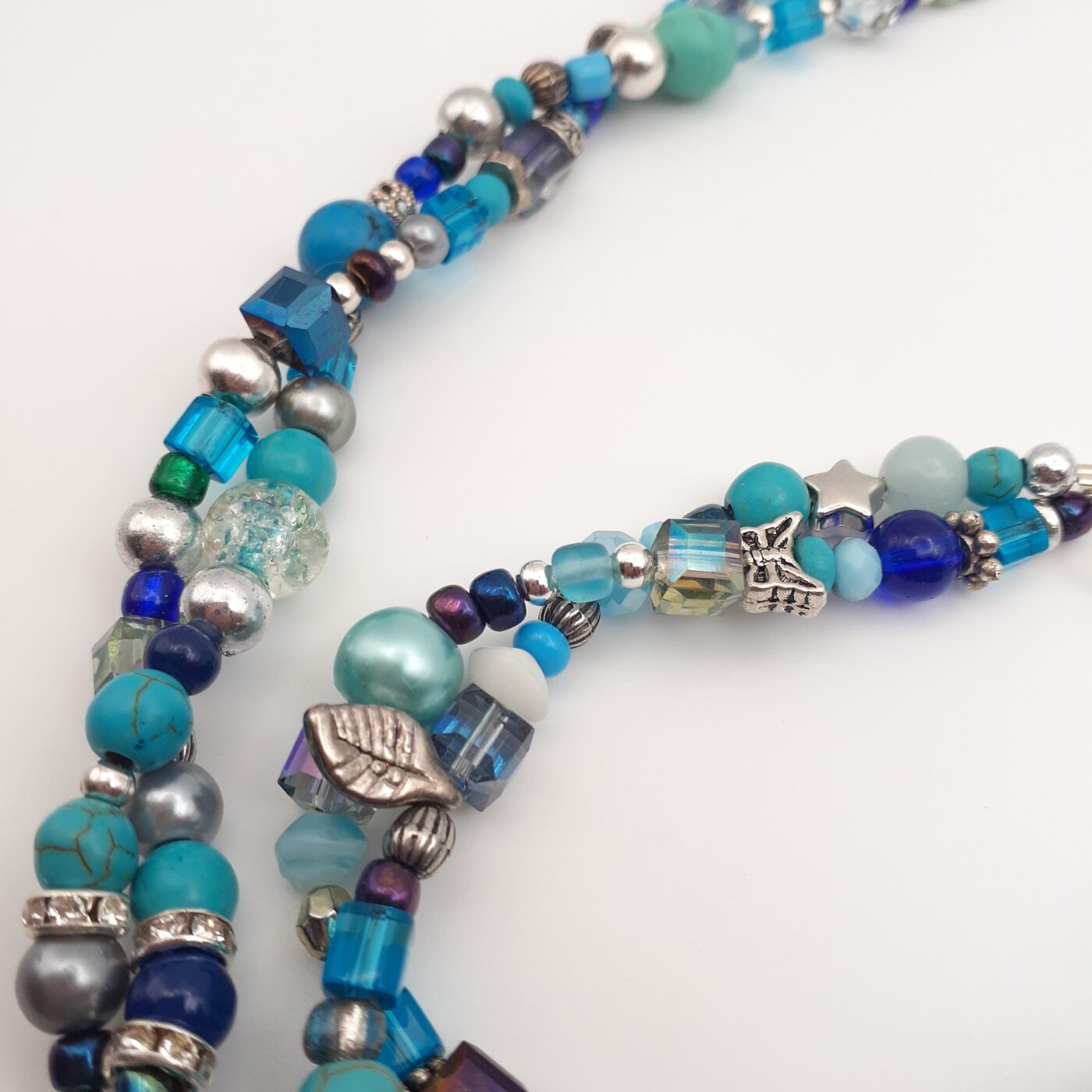 Beautiful blues bead soup twisted 2 strand 19 inch beaded necklace and bracelet matching jewelry set