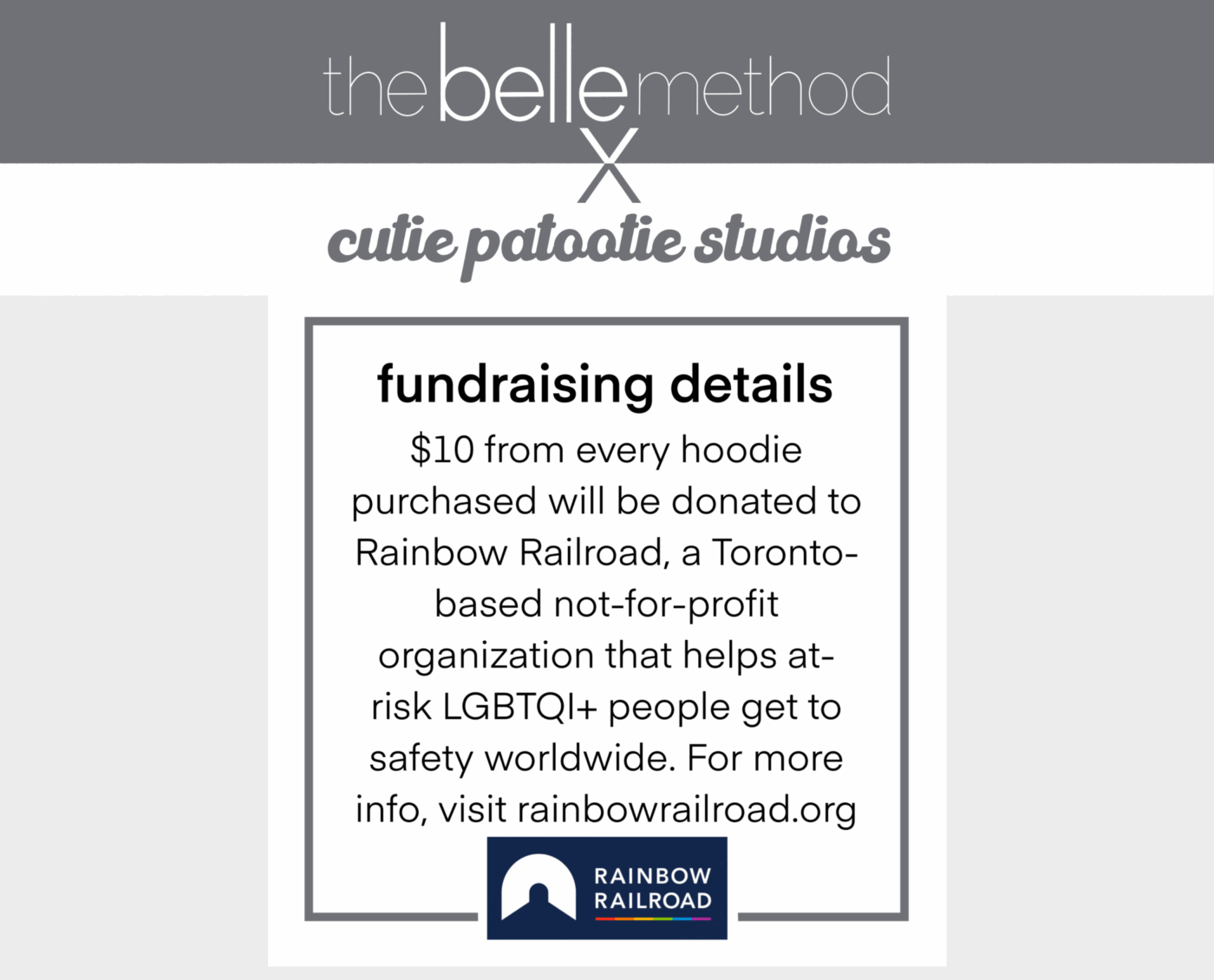 Who wants to go to the cottage for a good cause? Introducing the hoodie fundraiser, a collab between Cutie Patootie Studios and the belle method!
