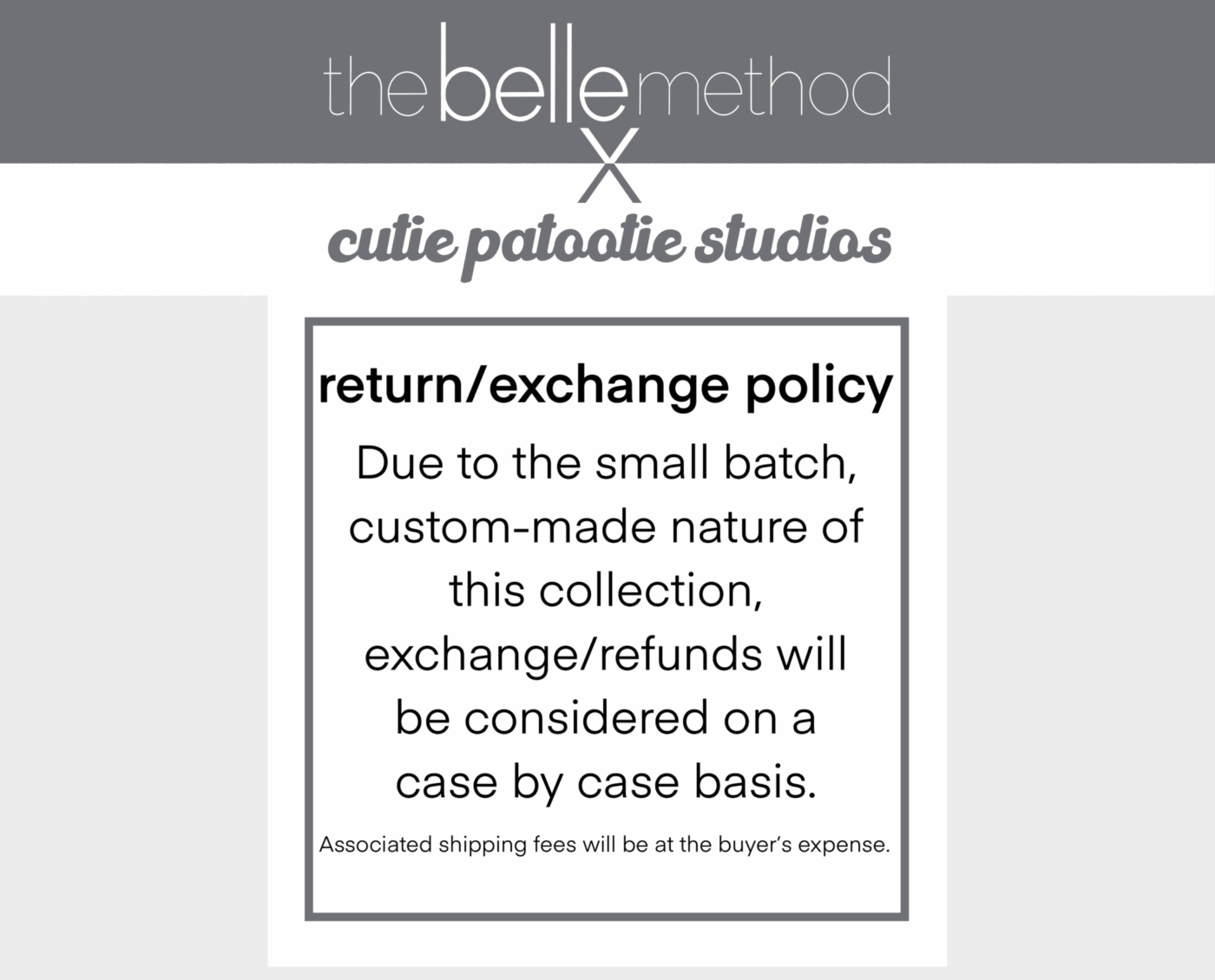Due to the small batch, custom-made nature of this collection, exchange/refunds will be considered on a case-by-case basis. Associated shipping fees will be at buyer’s expense.
