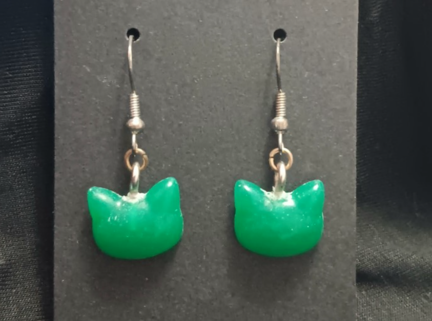 These cute, dangle earrings have a fun and playful style. Handmade resin with metal posts.