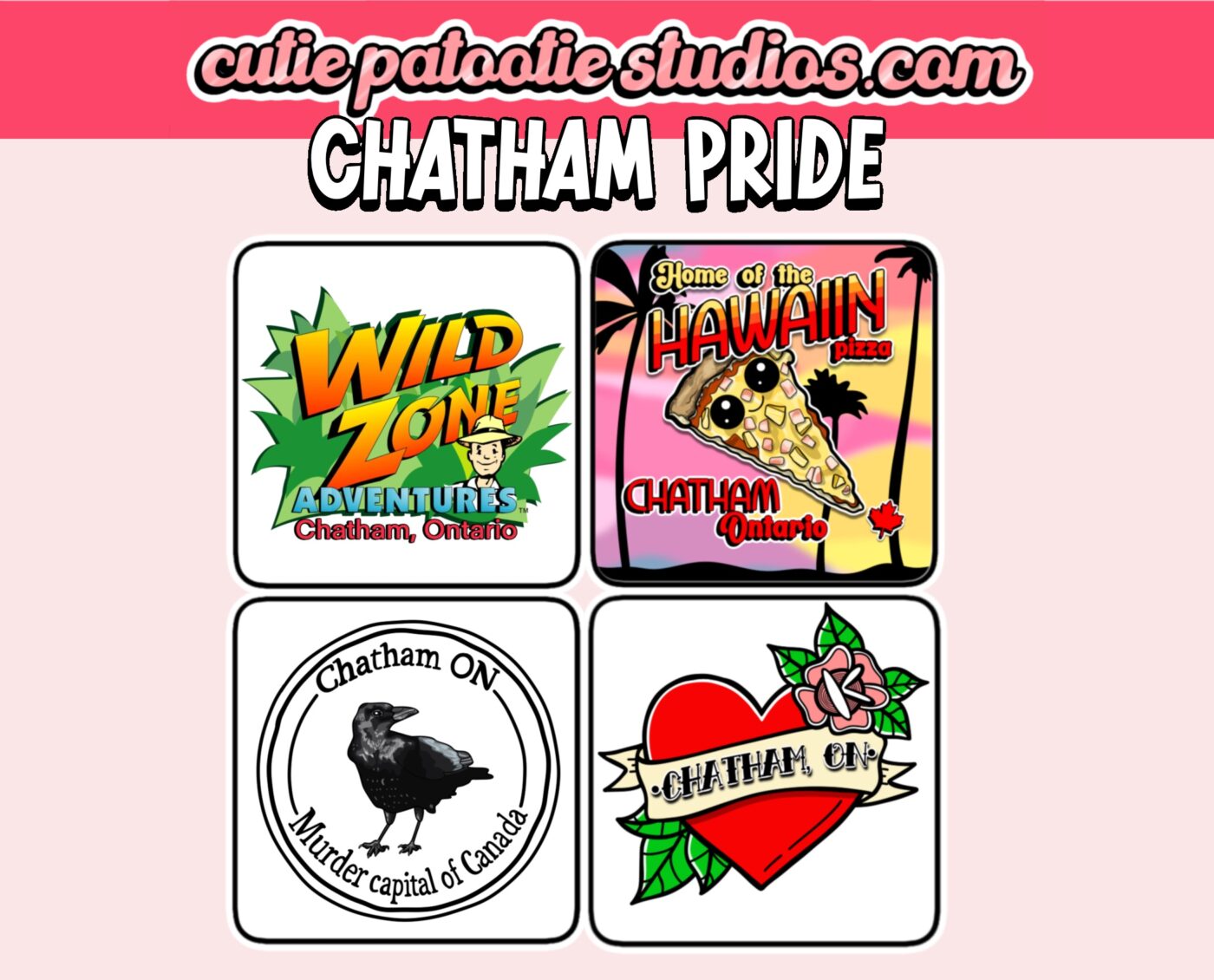Chatham merch? You betcha! Show your pride for Chatham with a magnet, featuring four designs that celebrate the things that make our city unique… and murderous!