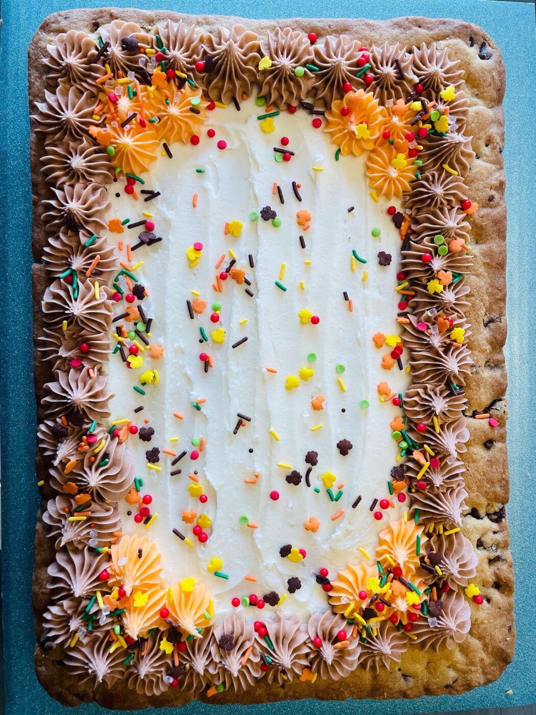 The most delicious and perfect mix of a cookie and cake, decorated with butter cream and a toss of sprinkles.