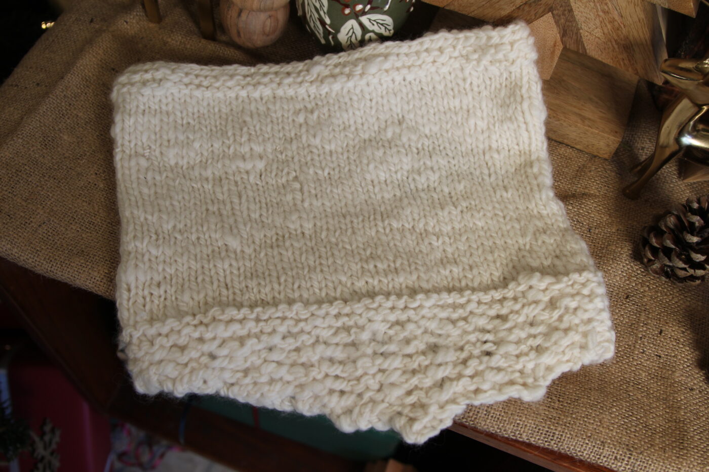 Wrap yourself in cozy luxury with this handknit cowl, made from 100% handspun wool in a soft natural cream tone. Each piece is crafted from thick, beautifully textured yarn, giving it a warm and rustic charm.
