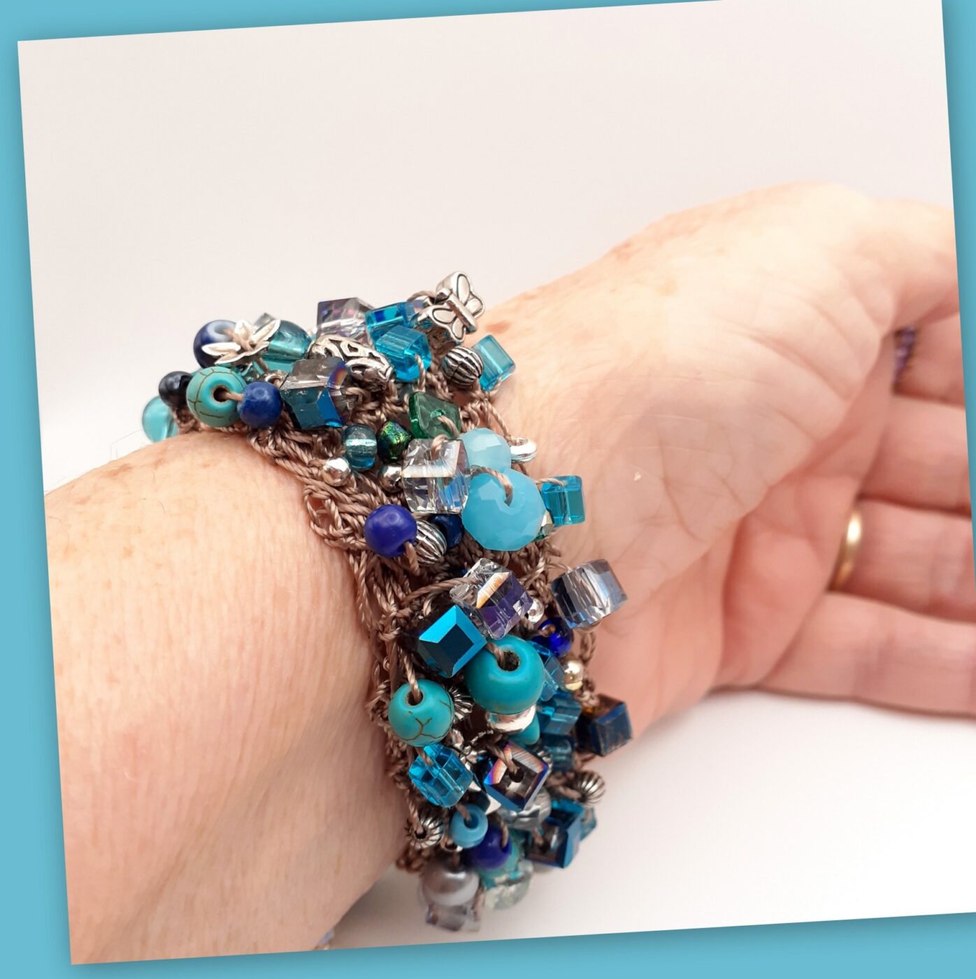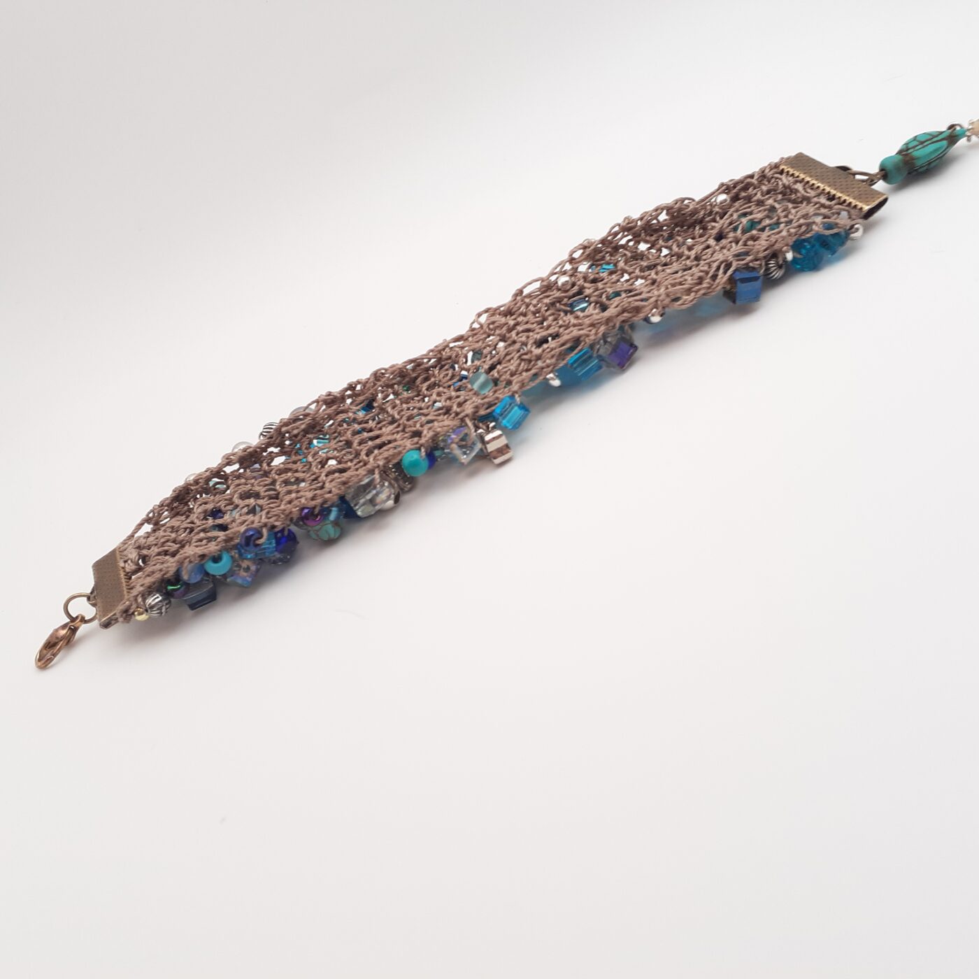 Crochet Bead Soup Blue Beaded Cuff Bracelet