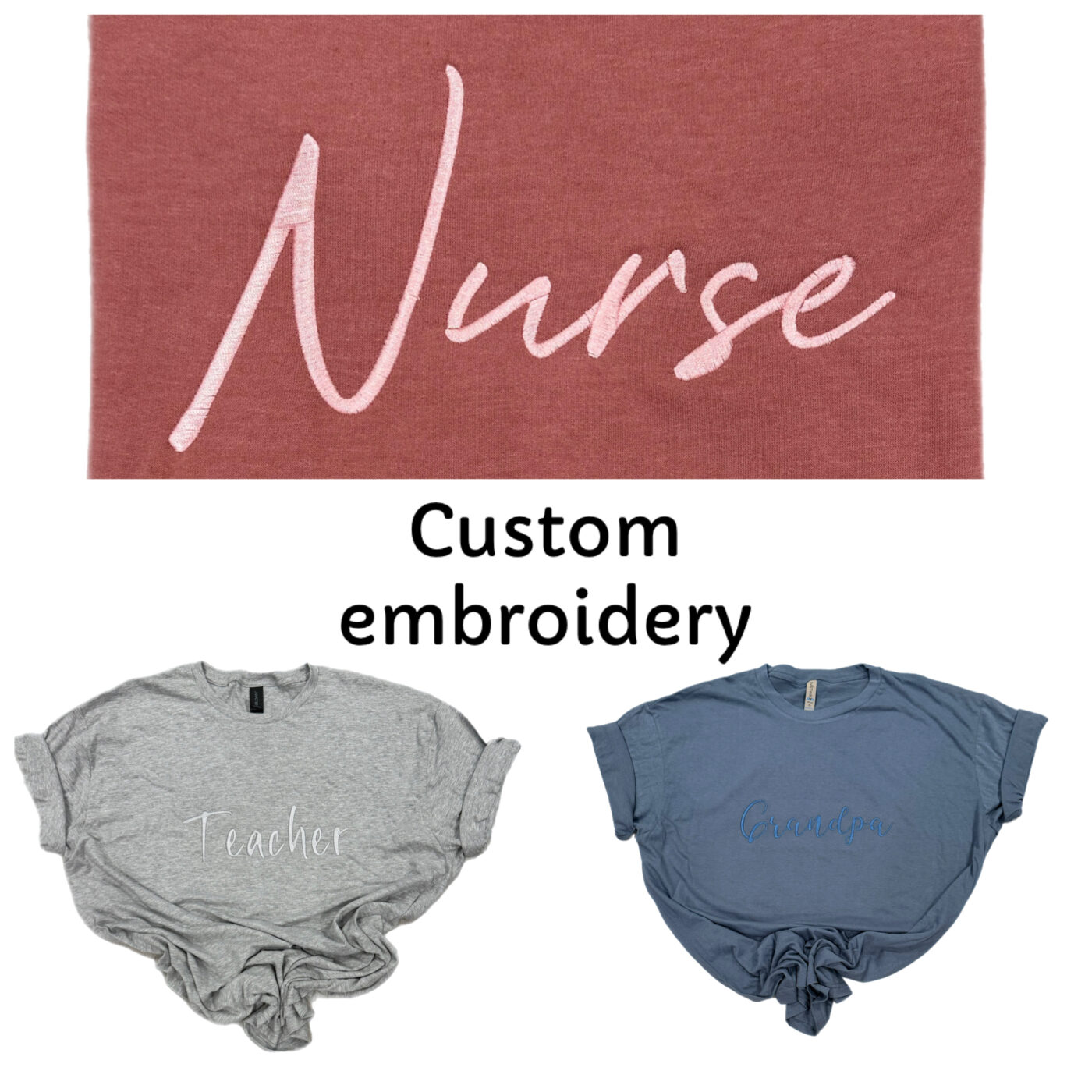 Custom embroidery tshirts, crewnecks, or hoodies make for the perfect gift for you or for someone you love! Stitched to last, designed to impress!