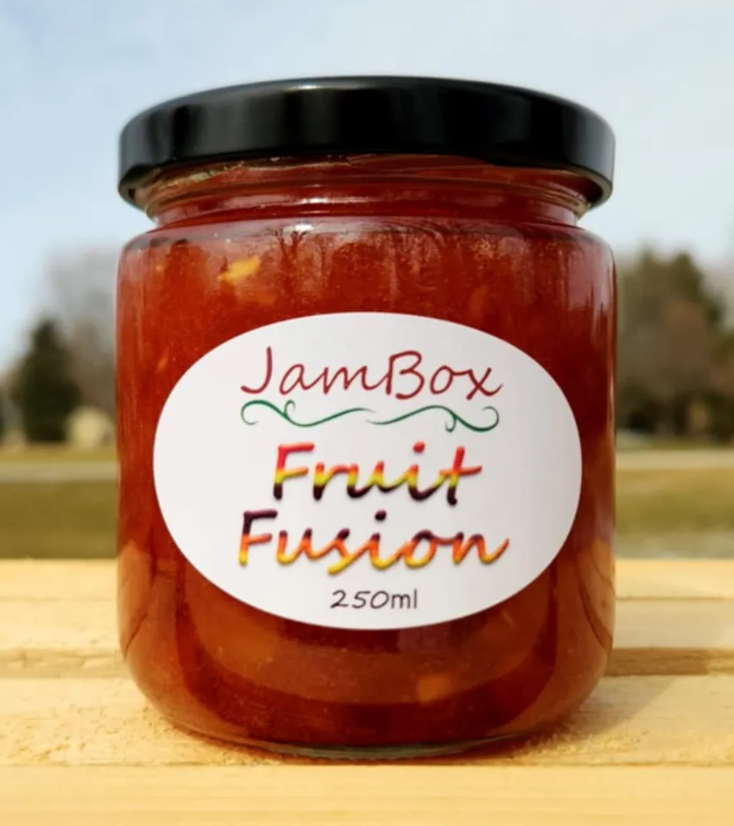 This jam is packed with 5 fruits – Red Grapes, Pineapples, Strawberries, Pears & Peaches. The red grapes, strawberries, pears & peaches are all grown right here in Ontario!