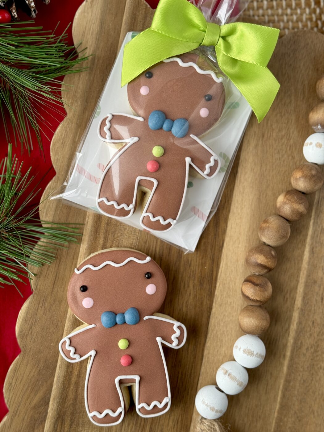 This adorable, festive themed cookie is 1 full size vanilla sugar cookie, approx 3.5” in size. Packaged in a bag that is heat sealed for freshness, with a beautiful backer and bow.