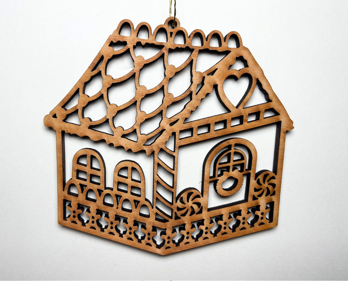 Designed and laser cut in Blenheim, these ornaments are available in three types of wood: maple (as shown), hickory, or walnut.