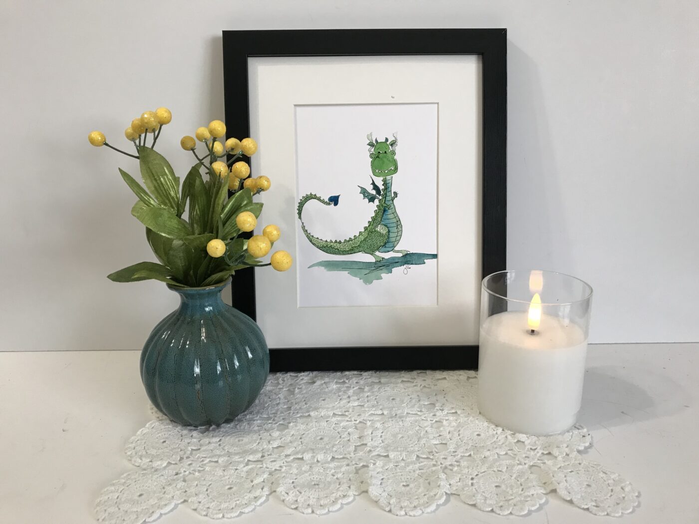 - Framed size (classic black frame; no matte): 5″ x 7″ ($25)