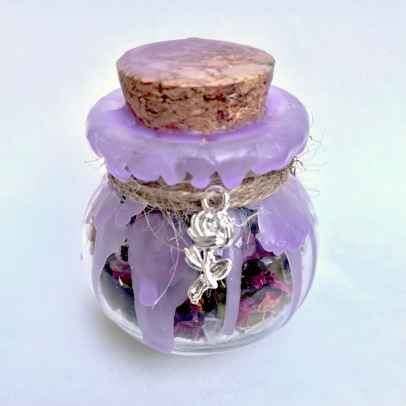 Spell jars are made with intention related to the theme, filled with magic to serve you. They make great gifts or use them yourself. There’s nothing else needed, however, some people like to charge them in the moonlight, cleanse them with smoke or say an intention into them. Follow your intuition. This jar is infused with calming, supportive and loving energy. The herbs and crystals in this jar are gentle transmuters of heavy energy, bringing slight relief during times of grieving.