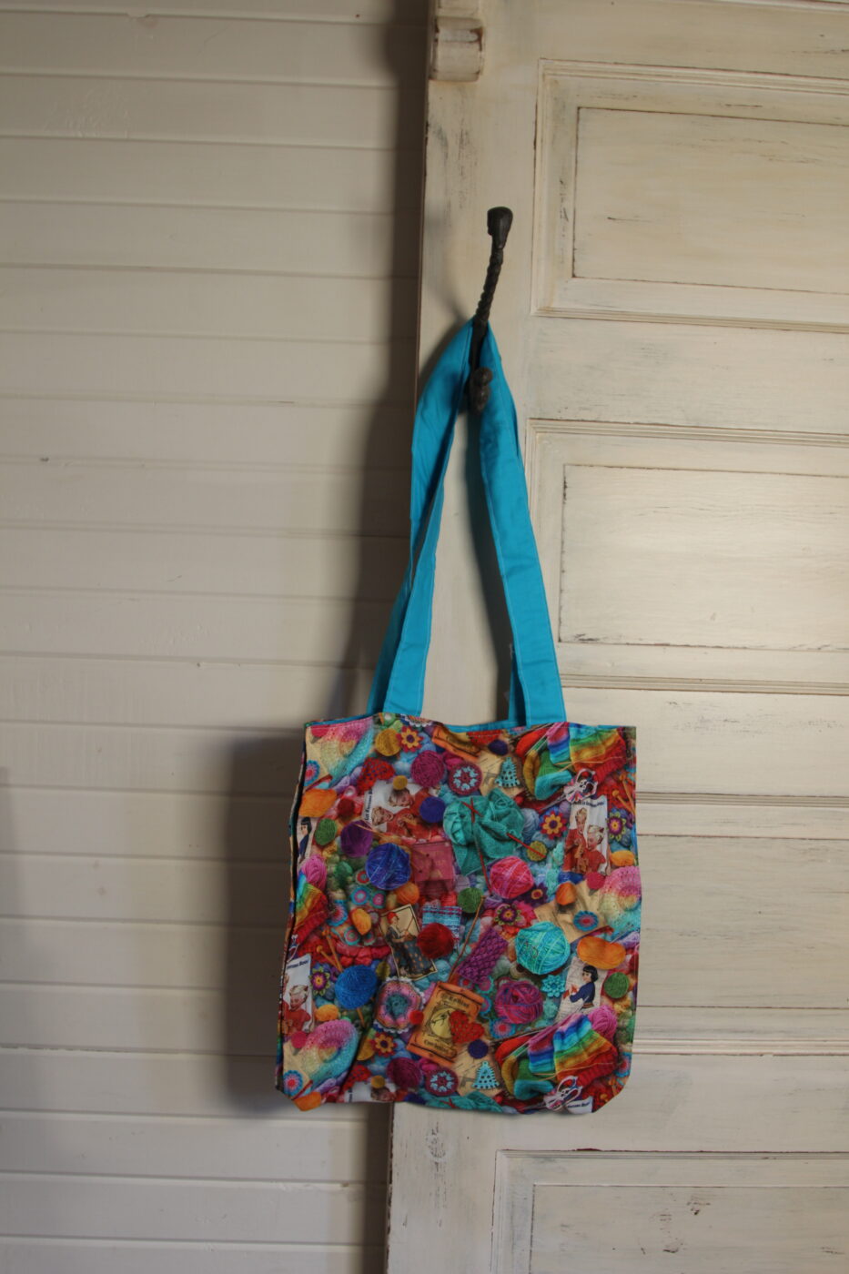 Hand Sewn Tote Bag (retro knitters, rainbow)