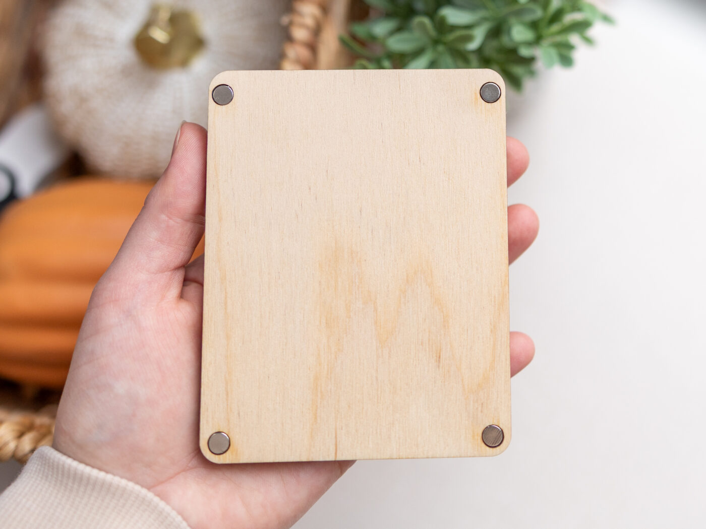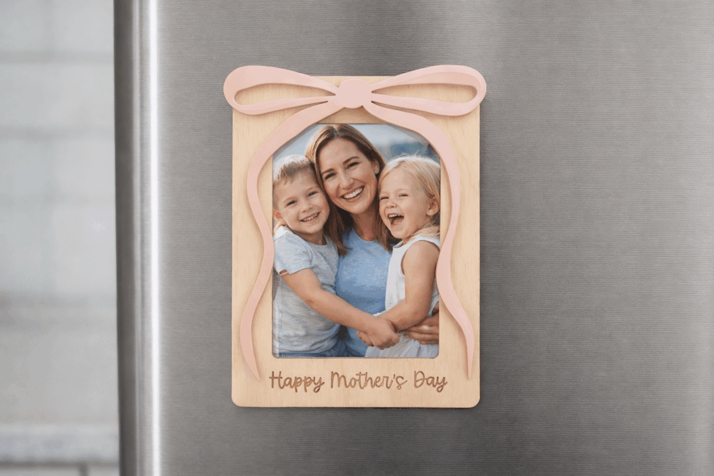 Celebrate the special mom in your life with this adorable wooden magnetic photo frame. Comes with strong magnets on the back for displaying on the fridge! These Mother’s Day frames fit a 2.5 x 3.5″ wallet-sized photo perfectly. Just slide the photo between the layers and it’s ready to gift!