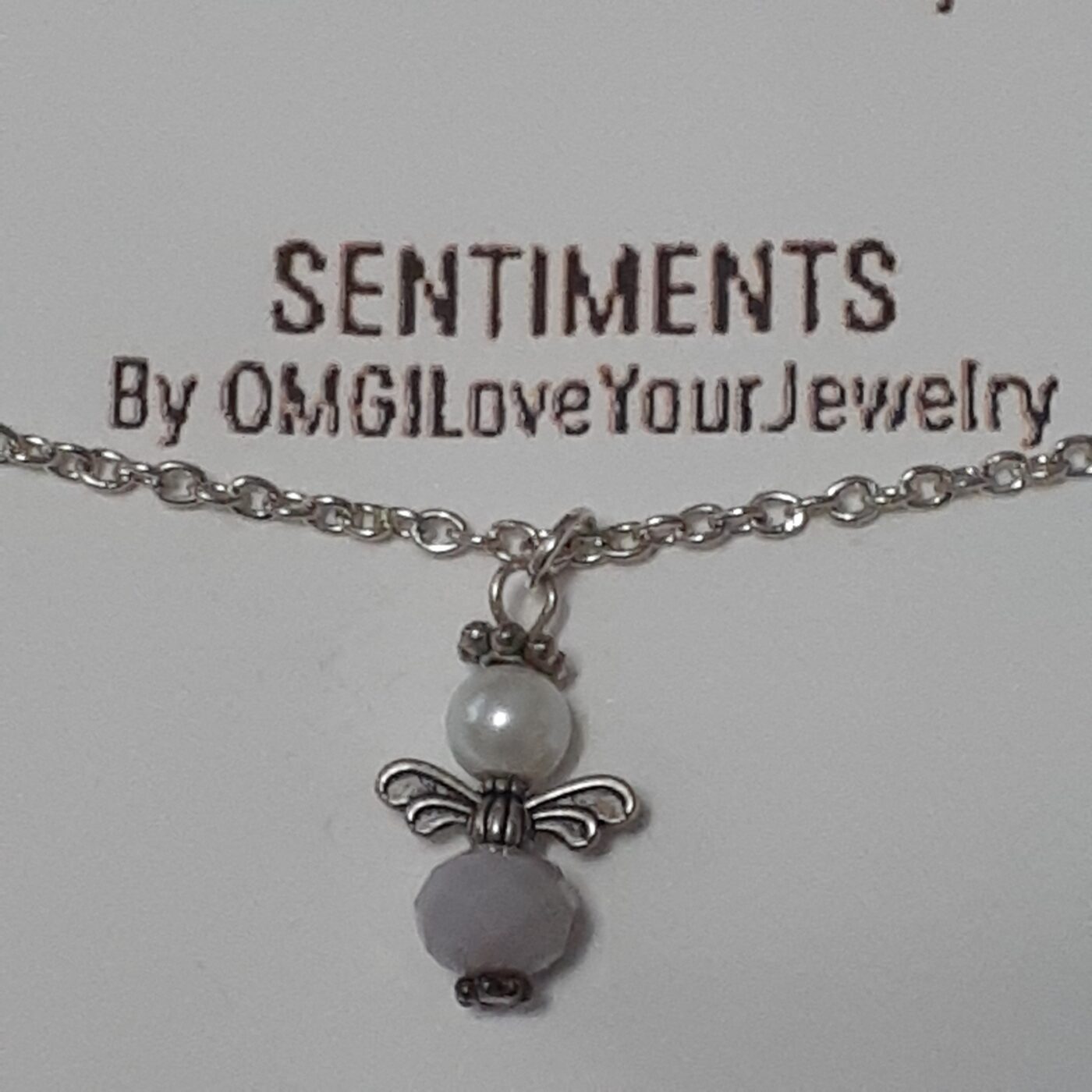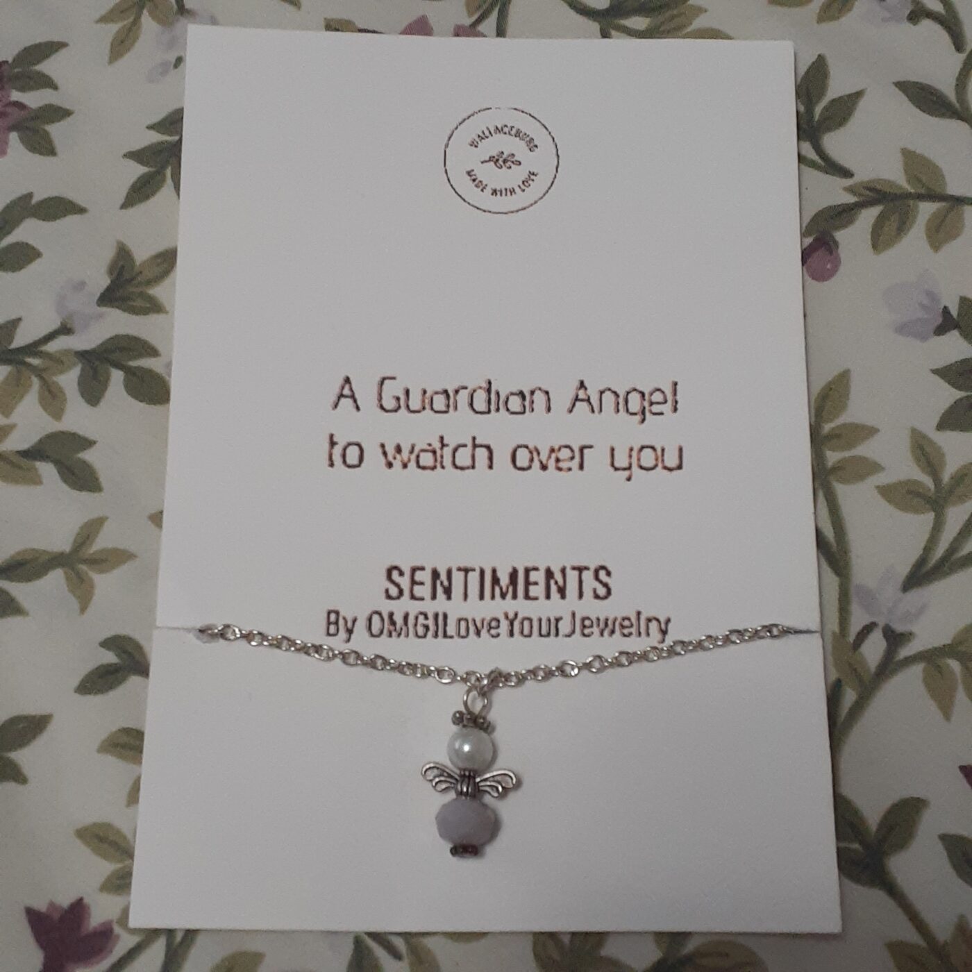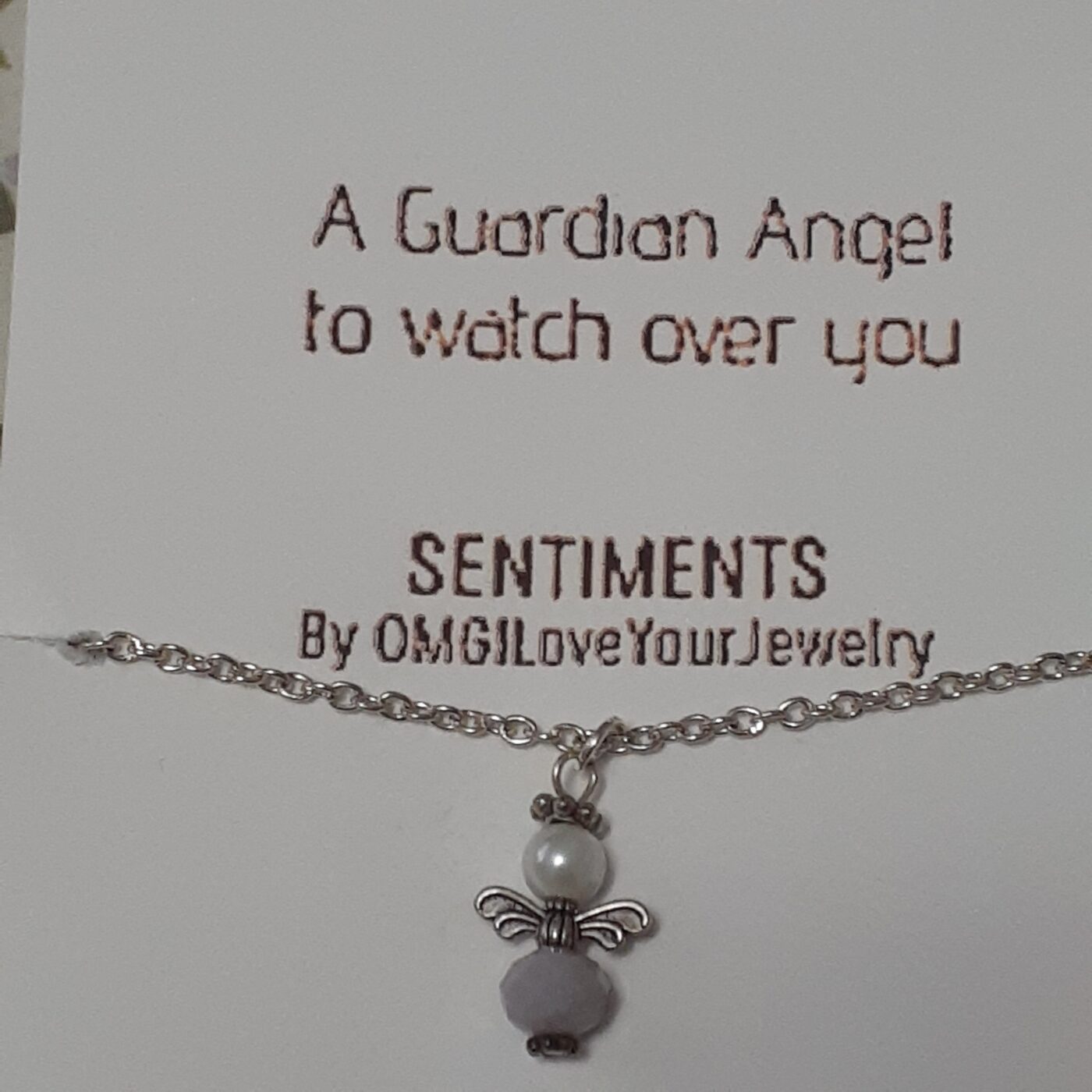 Sentiments Collection ~ Sterling silver Guardian Angel Necklace with an angel handmade by me with pearl and Czech crystals. A guardian angel to watch over you. The sterling silver necklace measures 18.5 inches long but I can make it to suit. Please contact me.