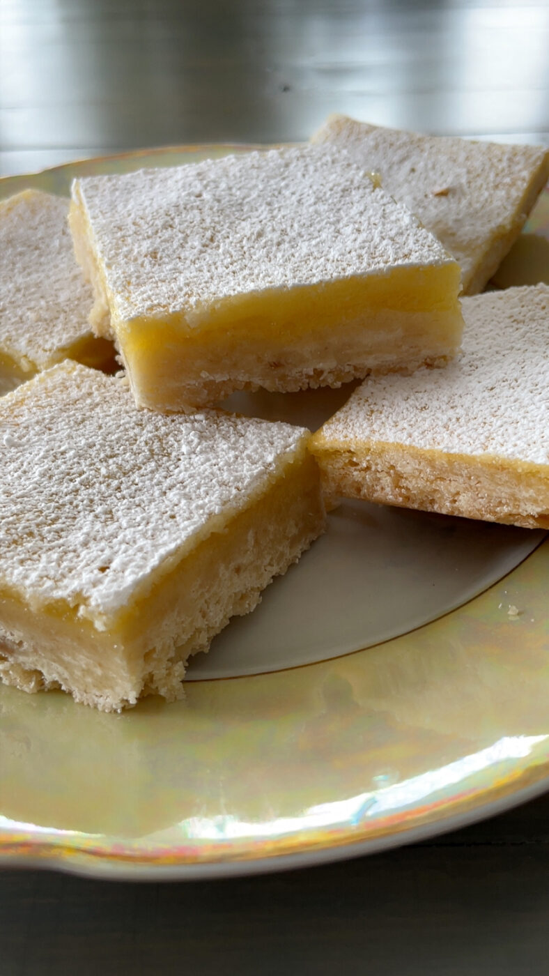 Fresh lemon squares, made from real lemons. Bright, tangy lemon curd on a buttery, shortbread crust. Baked fresh and perfect for Spring! Sweet, tart and irresistible; perfect for gifting, parties, picnics, or just treating yourself!