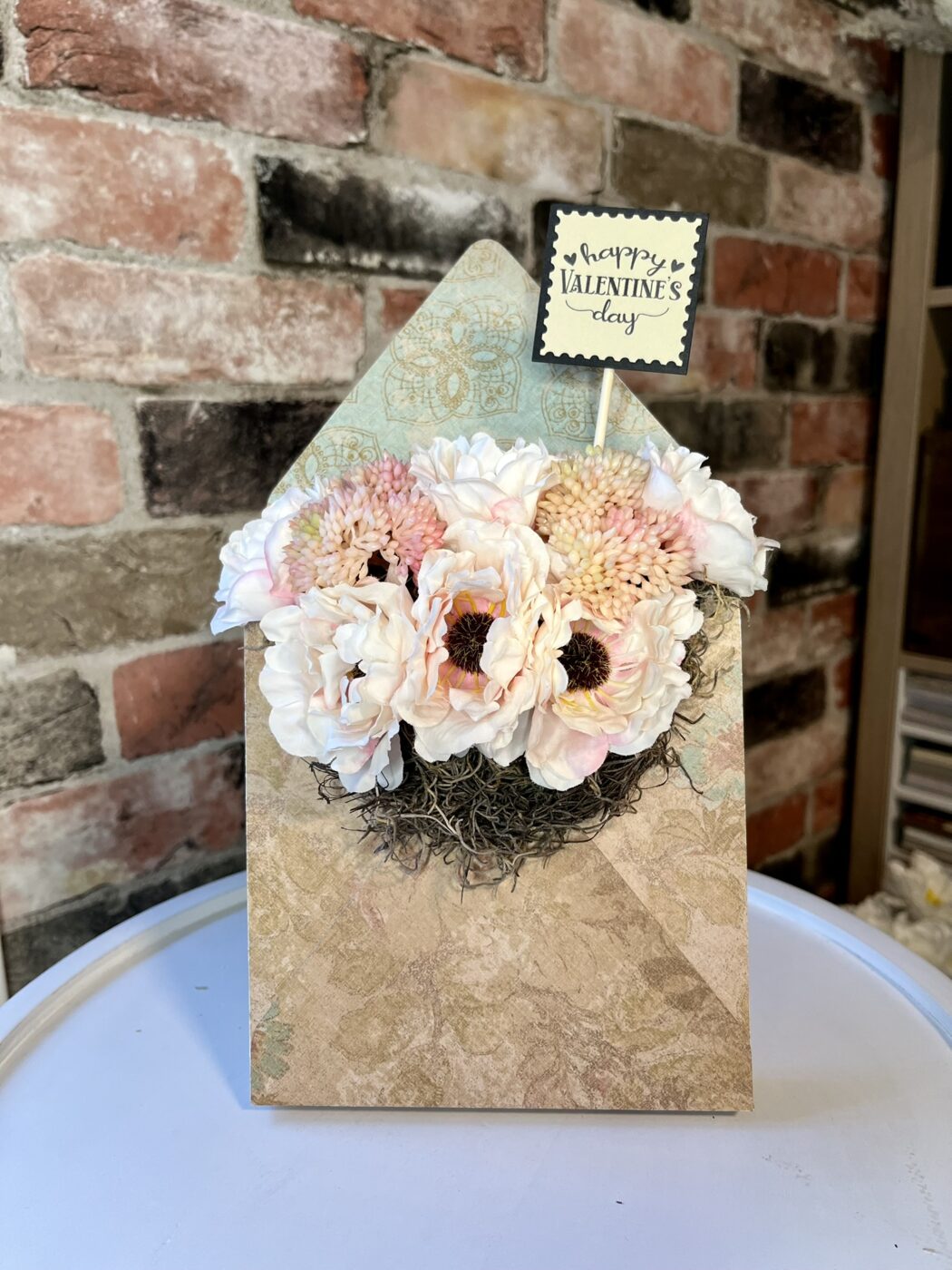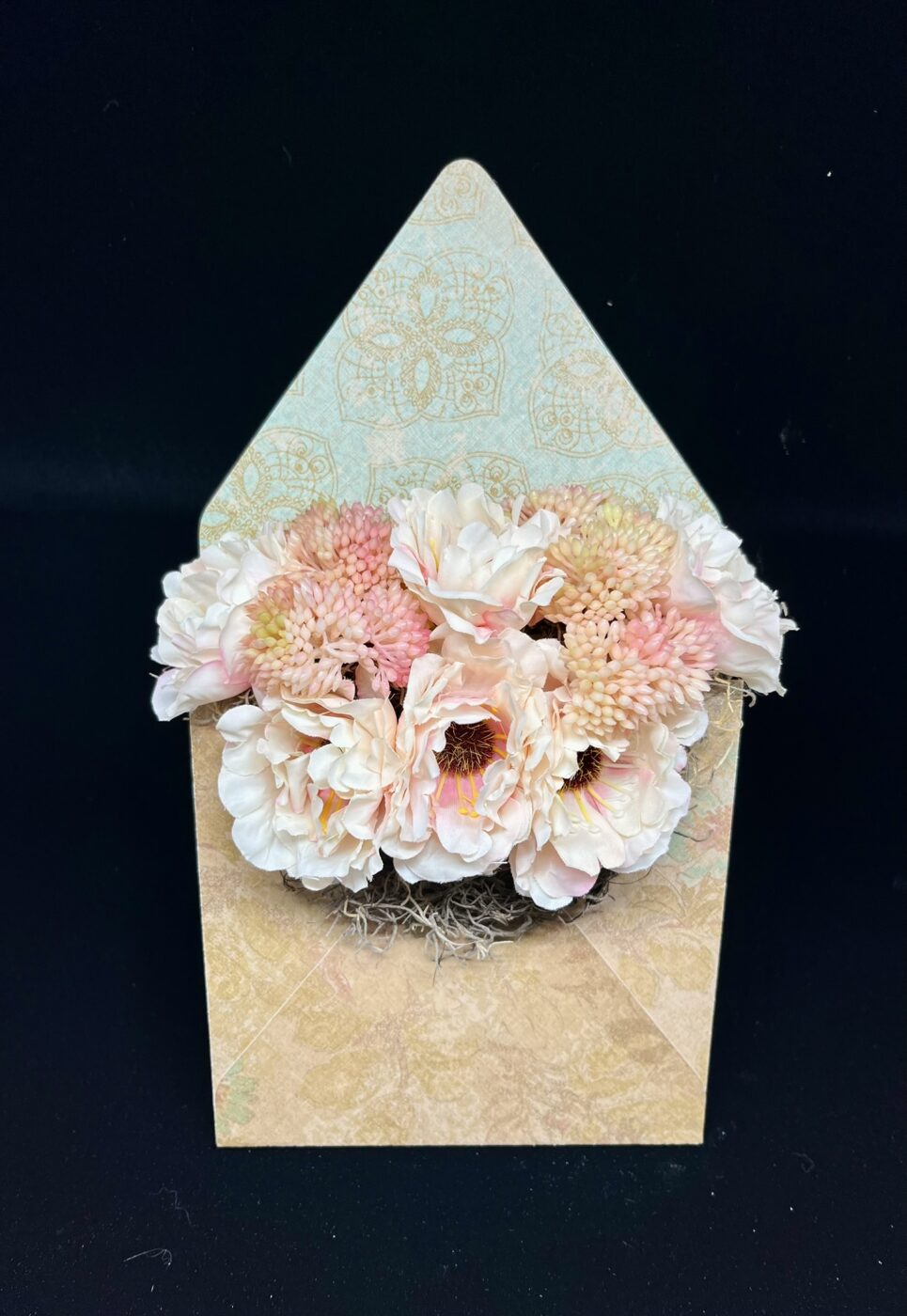 The idea for the Love Letter Collection grew from my love of old letters, pretty paper, and fun floral designs. Each unique envelope “pocket” is made from premium paper and filled with a rich variety of faux floral and greenery, which keeps their message of love long-lasting. Perfect for a breath of fresh décor or as a thoughtful, one-of-a-kind gift for Valentine’s Day, birthdays, or simply thinking of you.The Love Letter arrangement has an integrated stand allowing it to sit upright on a desk, shelf, table or window ledge.