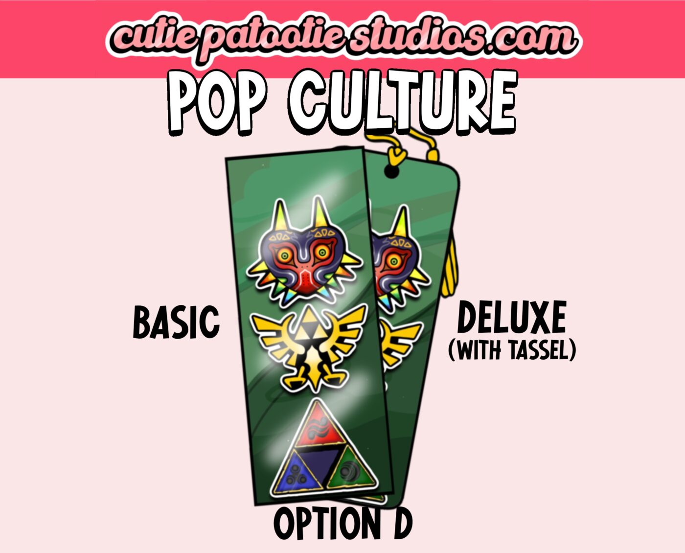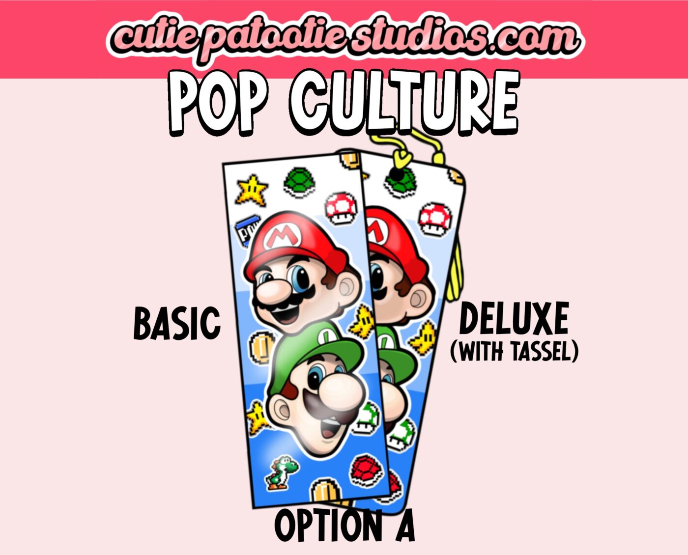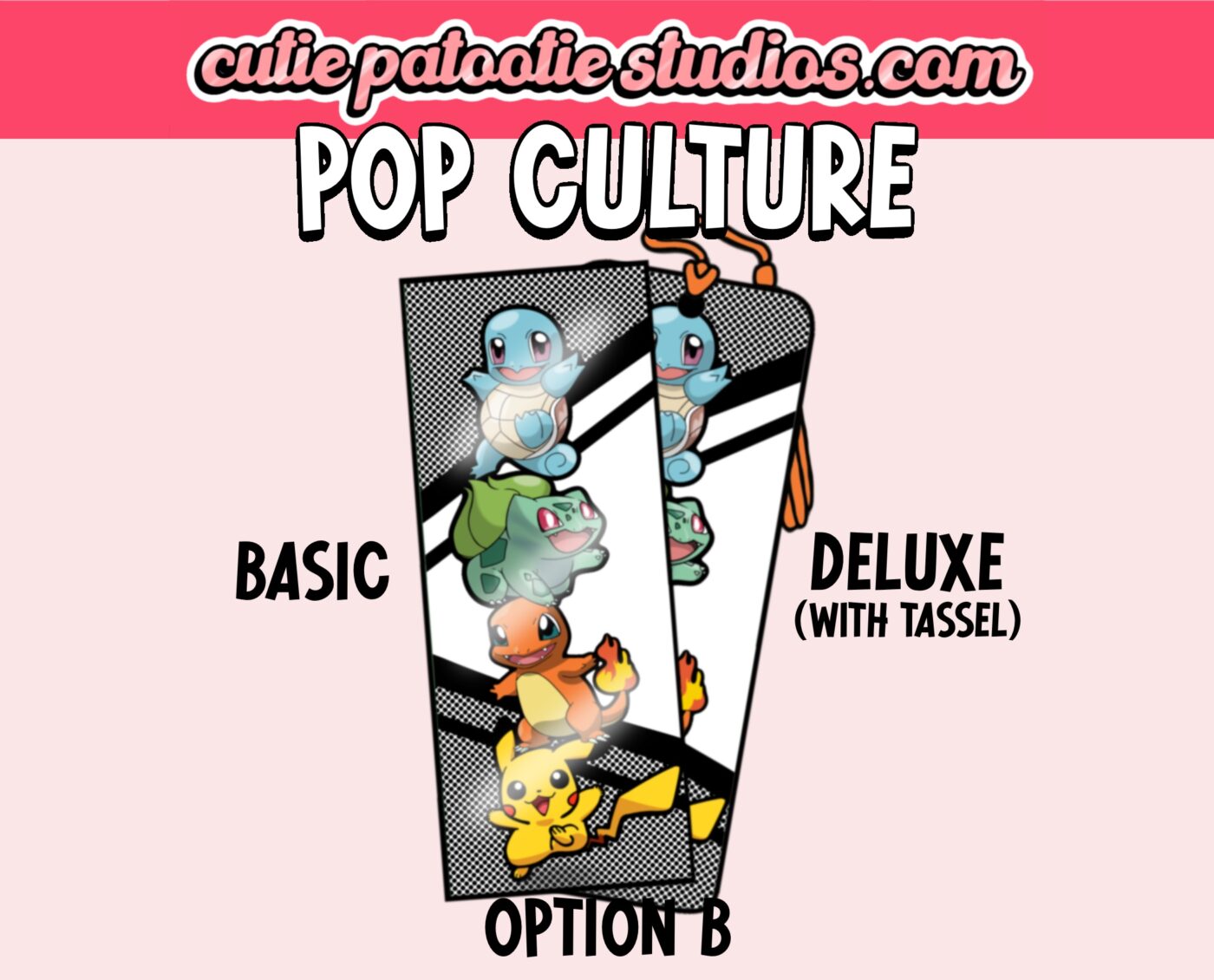 Here at Cutie Patootie Studios, we’ve got the perfect bookmarks for all of the POP CULTURE CUTIES out there! Choose from a variety of designs, in our simple Basic version, or the Deluxe version, which features a thicker bookmark and a colour coordinated tassel!