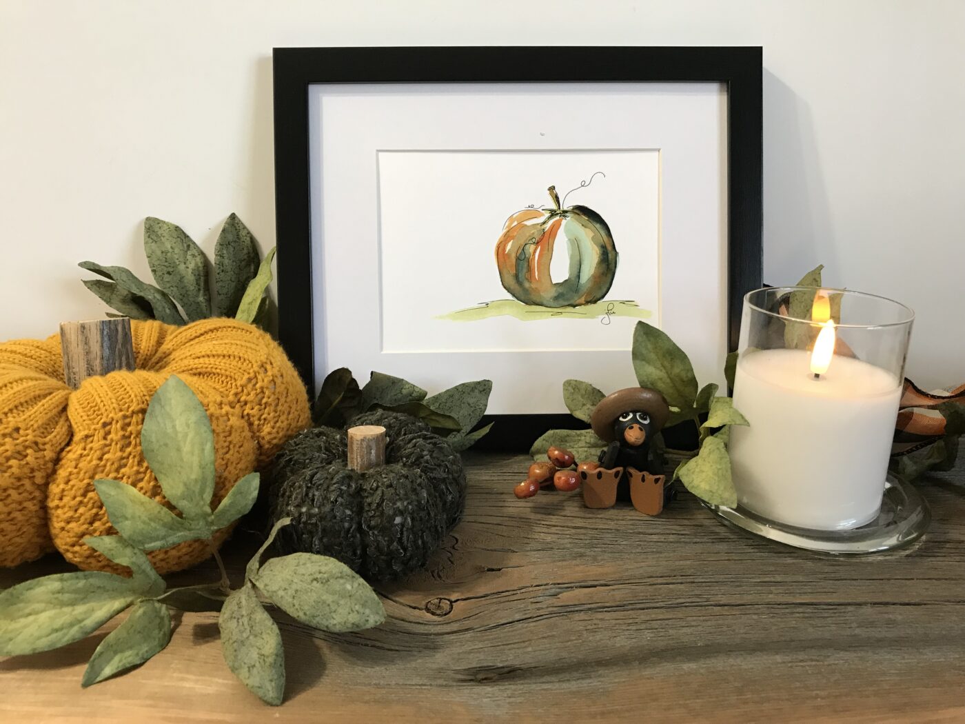 Part of my Autumn Collection. This piece captures the simplicity of the season with a beautiful pumpkin. Such a perfect decor piece for the harvest season and beyond. Micron ink pen and watercolour design.