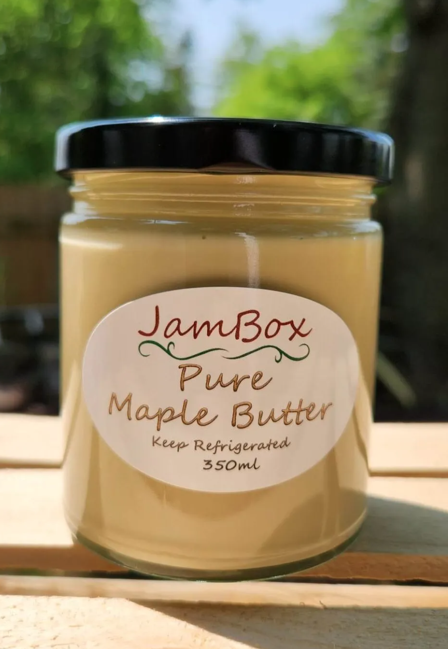 No actual butter is added to this recipe it is just 100% pure maple syrup churned into a creamy like thickness that has a delicious candy like taste to it, I personally think it taste a lot like pure maple fudge but without any chocolate but that pure candy like maple taste is really there and just amazing on just about anything.