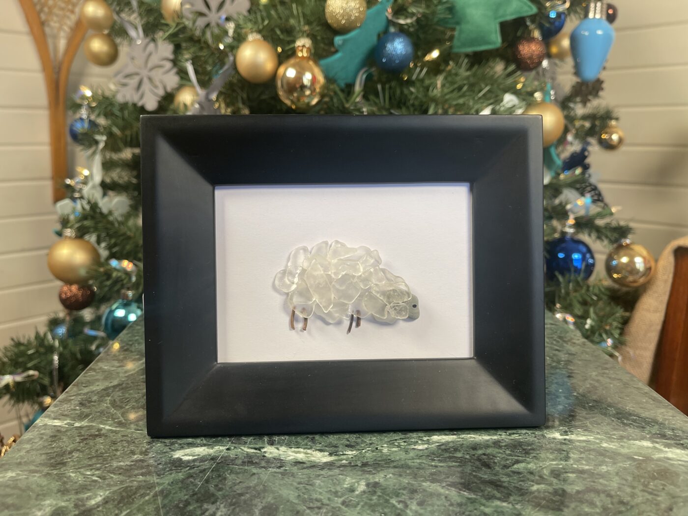 This cute sheep is made of seaglass from Lake Erie that overlap to form this cute farm animal. Cute gift for someone you love or to decorate your own space.