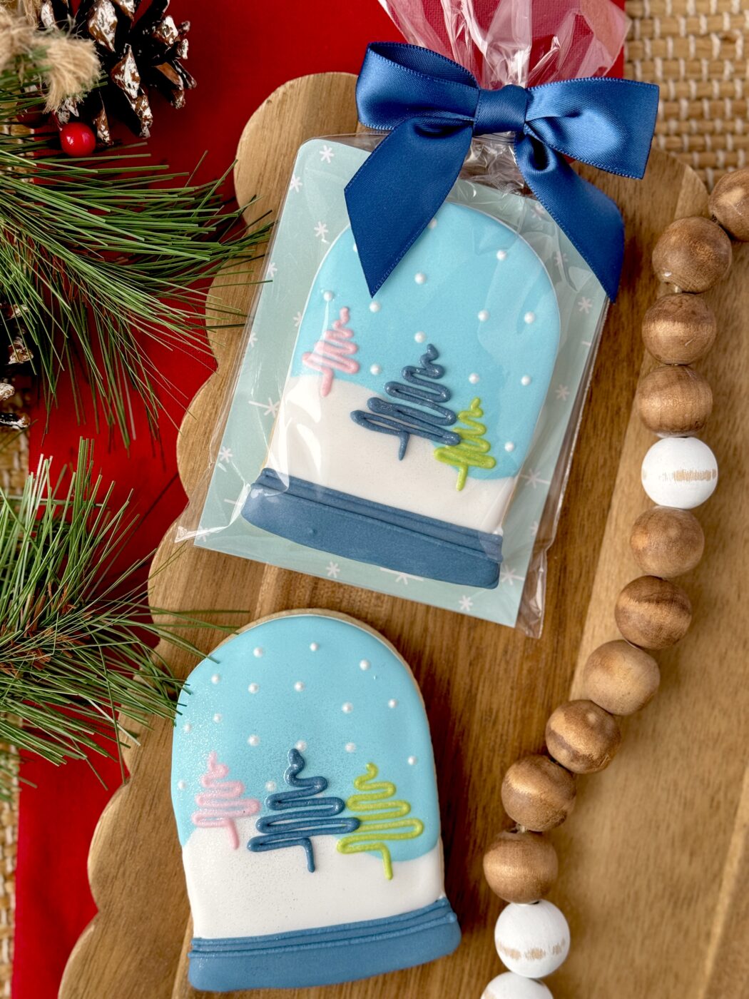This adorable, festive themed cookie is 1 full size vanilla sugar cookie, approx 3.5” in size. Packaged in a bag that is heat sealed for freshness, with a beautiful backer and bow.