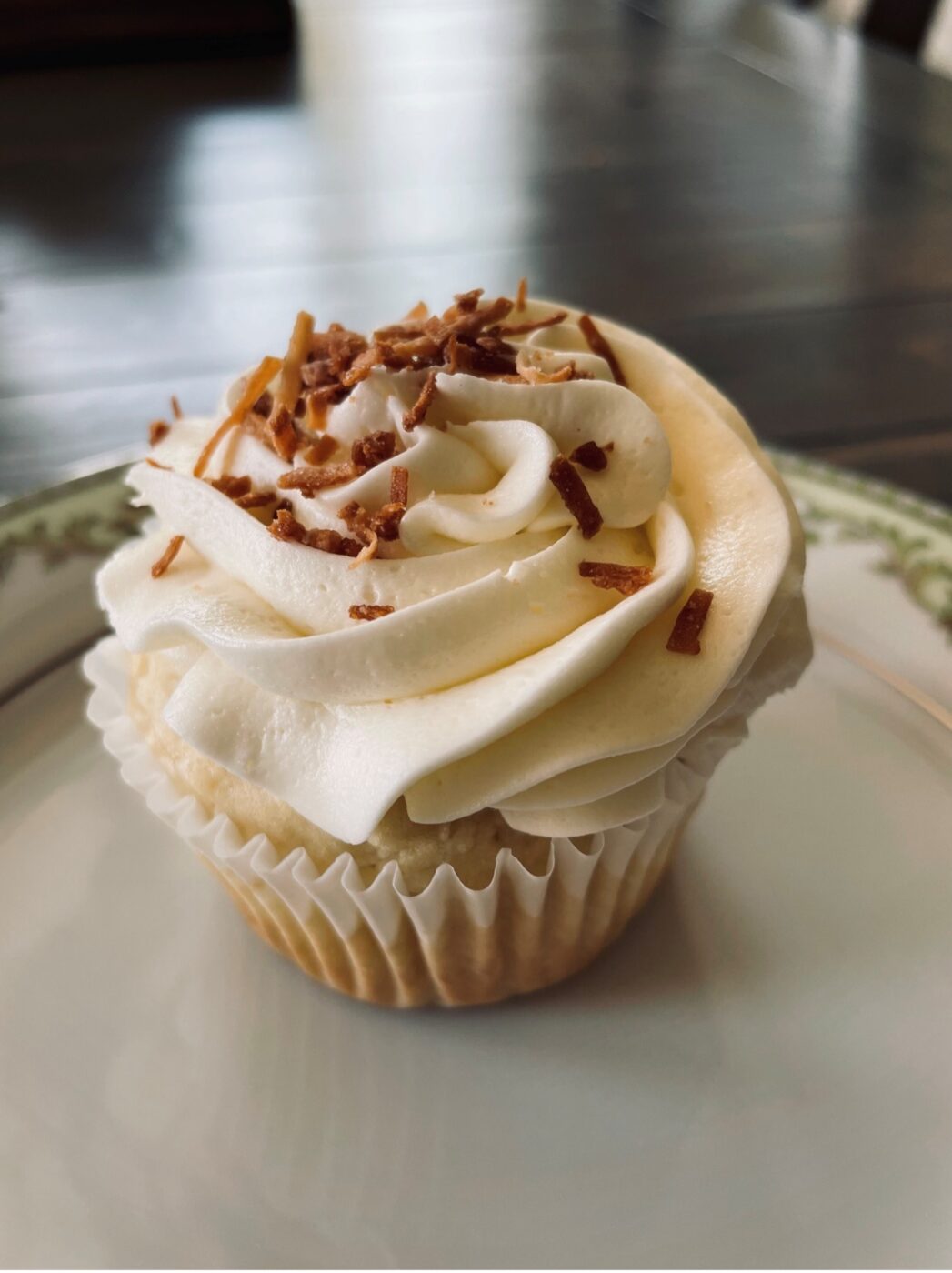 - 12 COCONUT – topped with coconut cream cheese icing and coconut flakes