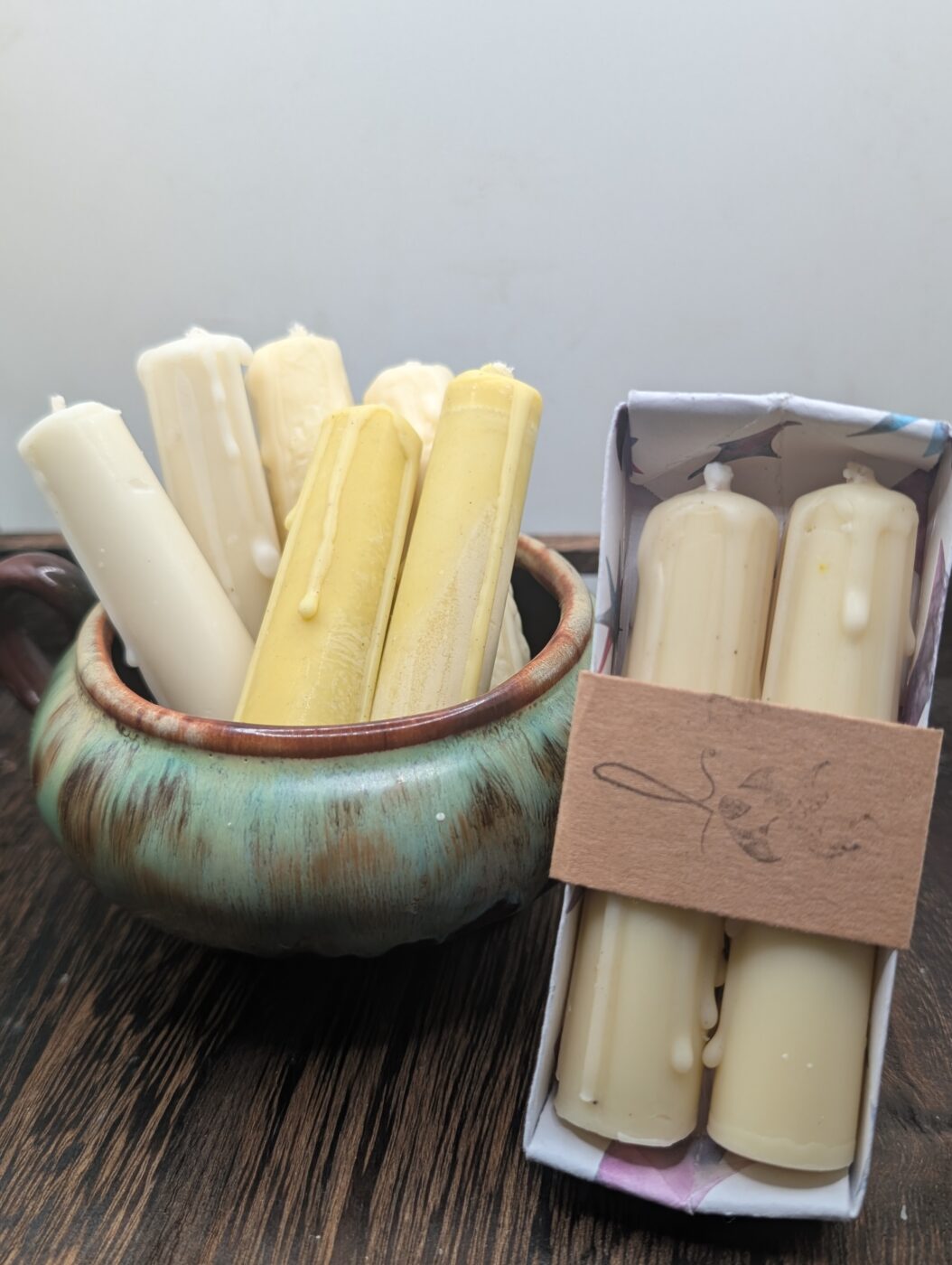 Imbued, handcrafted tapers intended to be used in magical or meditative practices. Burning for approximately 3 hours, these soy and beeswax blends can be used for cord cutting rituals, flame viewing divination or wax reading divination practices.