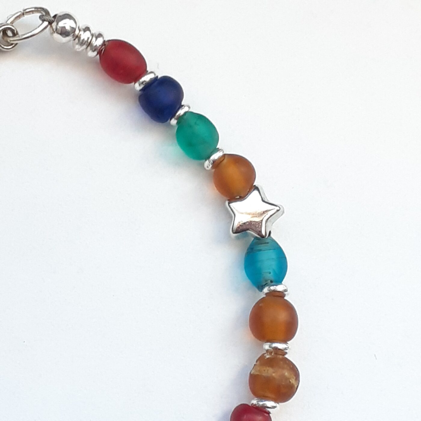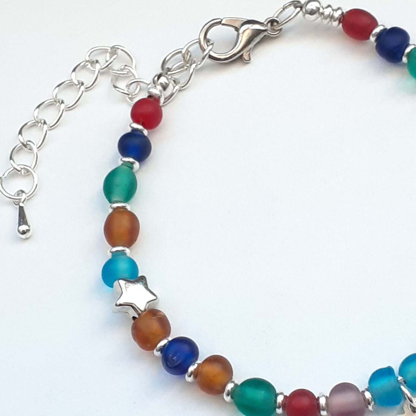 Stars Hearts and Frosted Colourful Beaded Adjustable Charm Bracelet