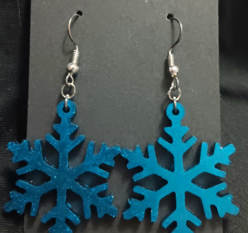 Thin Snowflake Dangle Earrings (Blue)