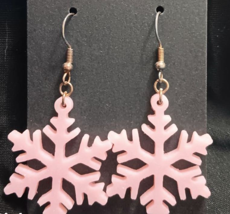 Thin Snowflake Dangle Earrings (Pink)