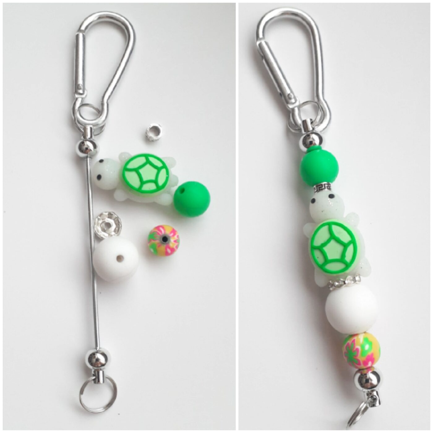 Use your custom beaded charm as a keychain, and make sure your keys are very easily identifiable and uniquely your own with this fun kit. You can also create your beaded charm design as an accessory that you can add to your backpack, or as a purse charm, a zipper pull statement piece, or anywhere you’d like to accessorize with your personal style.