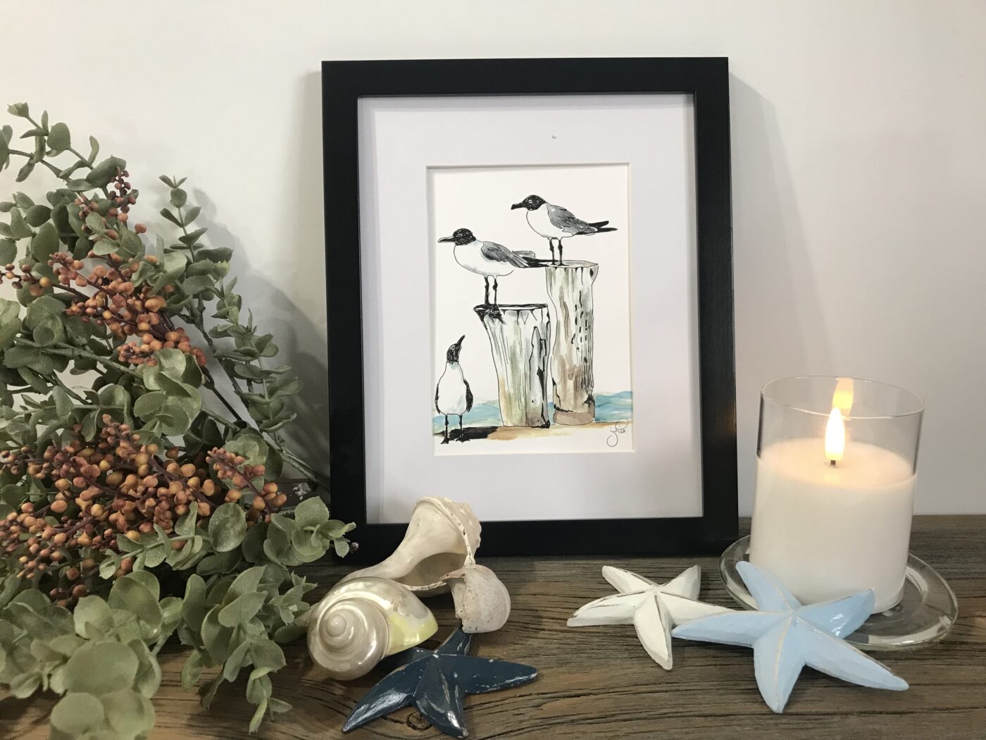 Who doesn’t love going to the beach and soaking up the sun! I have water coloured several little sandpipers and seagulls perfect for your cottage or set them in your office to reminisce.