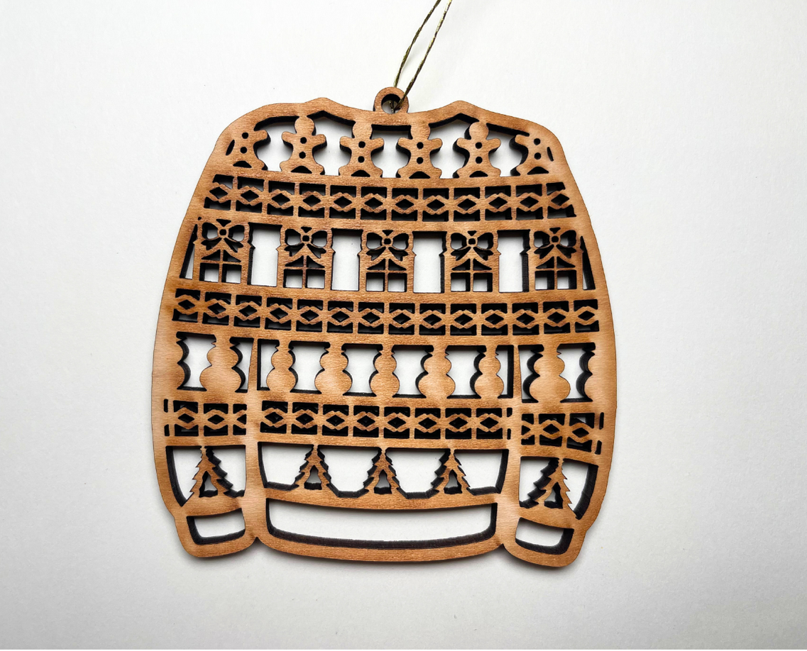 Designed and laser cut in Blenheim, these ornaments are available in three types of wood: maple (as shown), hickory, or walnut.