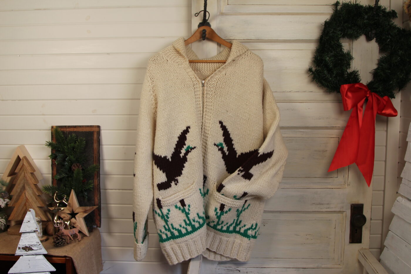 This handed knitted early 60’s sweater is HEAVY. Built to last the test of time and winter chills, this cozy piece is best brought out for the special occasions.