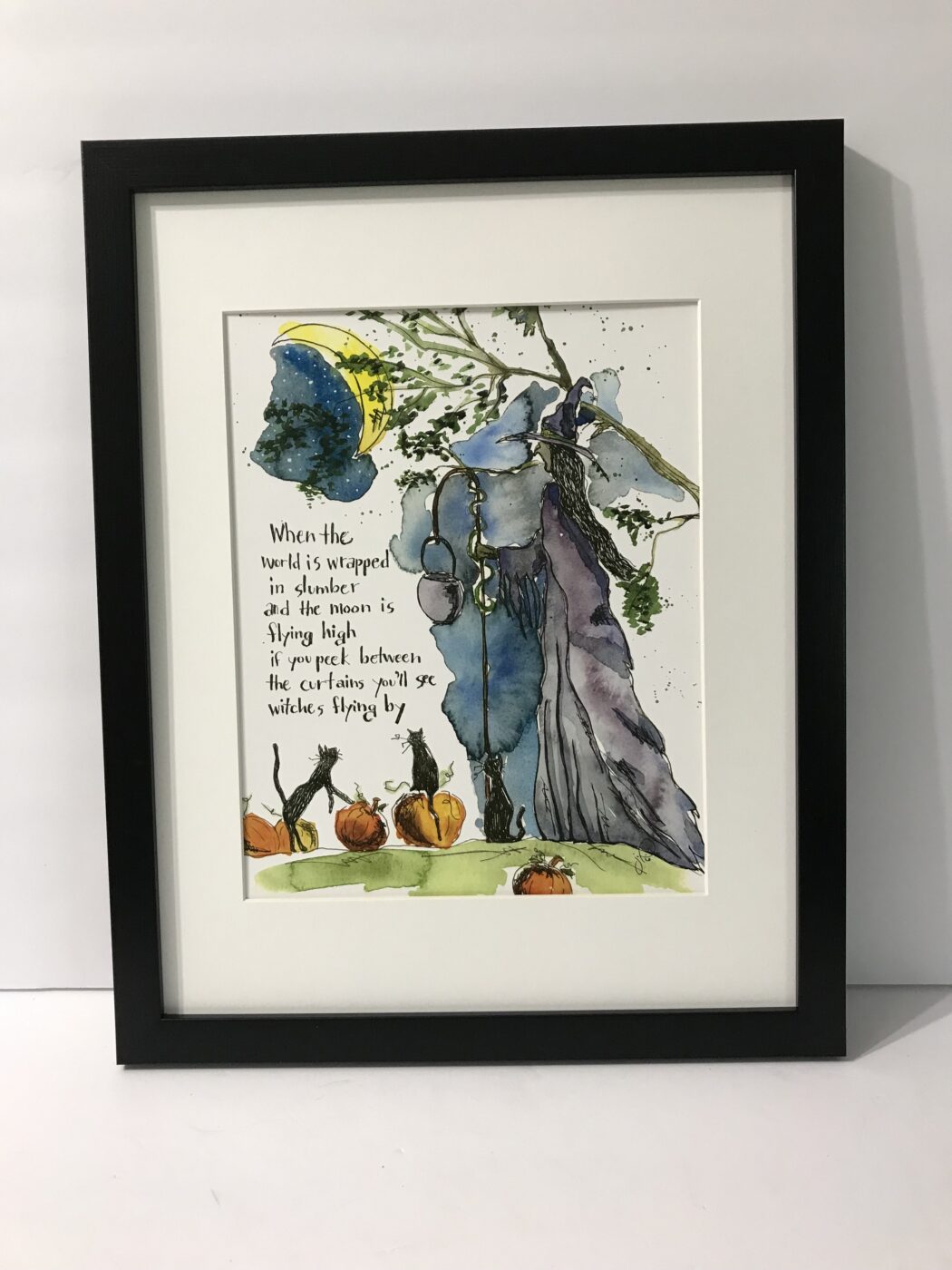 The message: “When the world is wrapped in slumber and the moon is flying high, if you peek between the curtains you’ll see witches flying by” adds a nice final touch. This makes for a beautiful piece for the harvest season and beyond.”