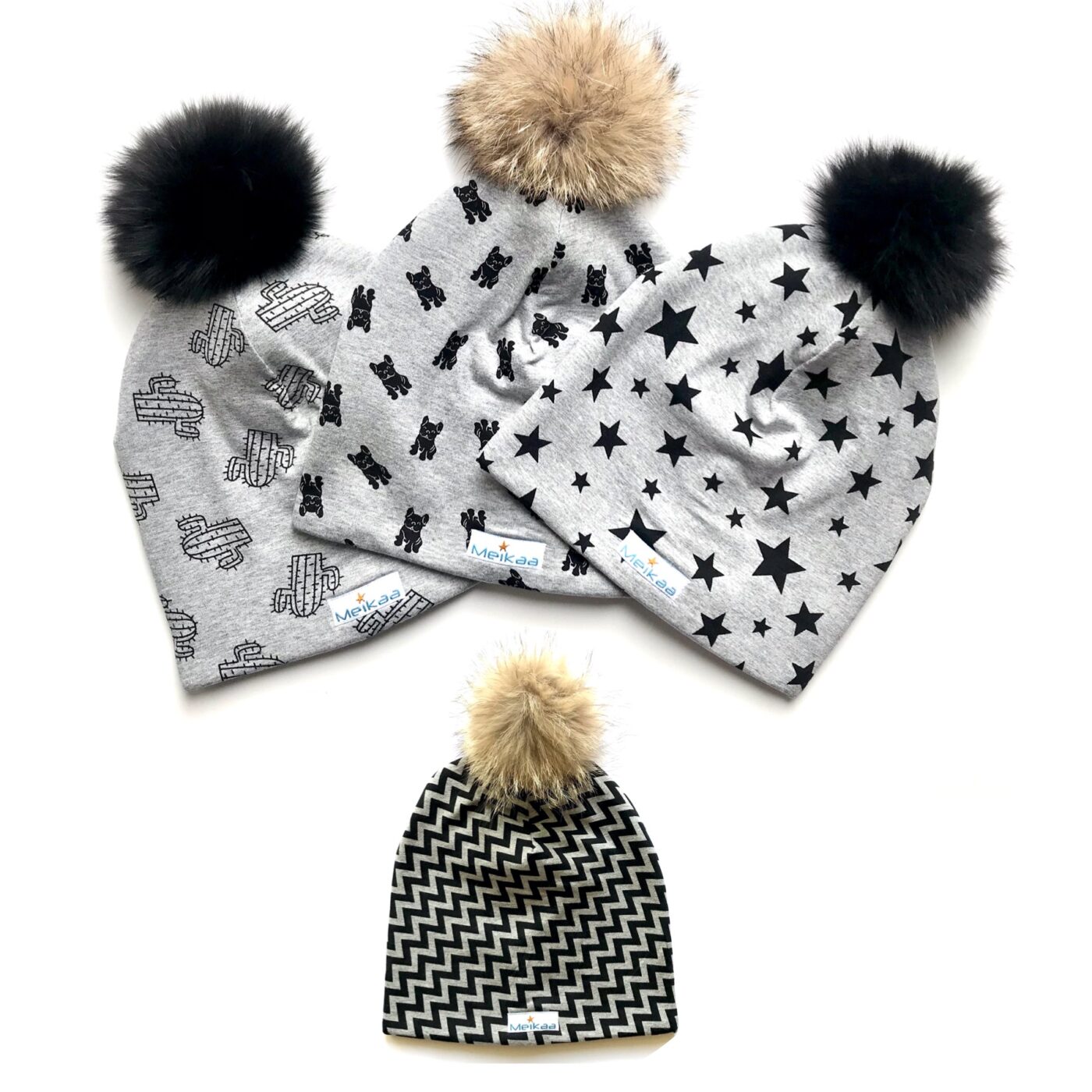 Choose your grey pattern. Choose your pompom colour.