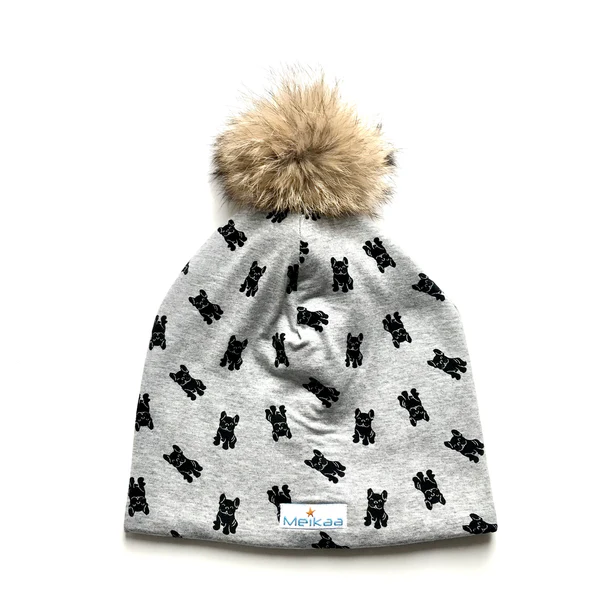 This cute hat includes a recycled real fox fur pompom approx. 3-4 inches in diameter (3 pompom colours to choose from). Plus, to make it easier to wash, we added a snap fastener to the pompom. You can now wash your hat without washing your pompom.