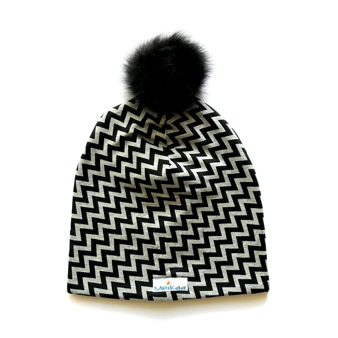Winter Bamboo Grey Pattern Hat with Recycle Fur Pompom