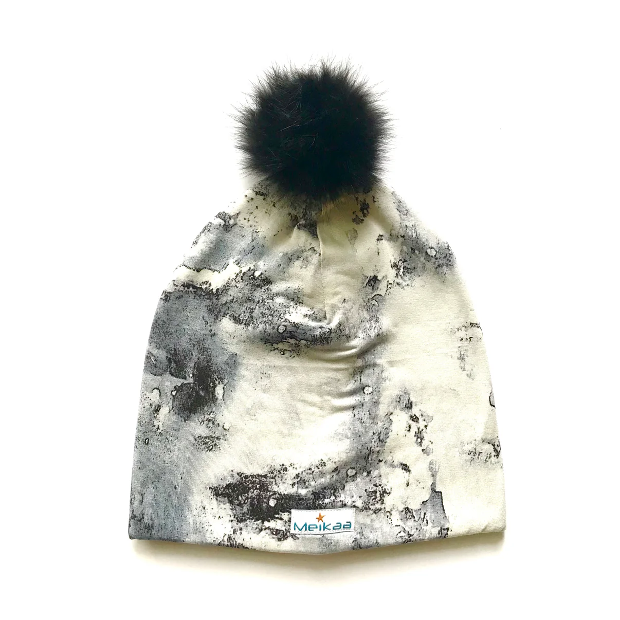 Winter Tie Dye Hat with Recycle Fur Pompom