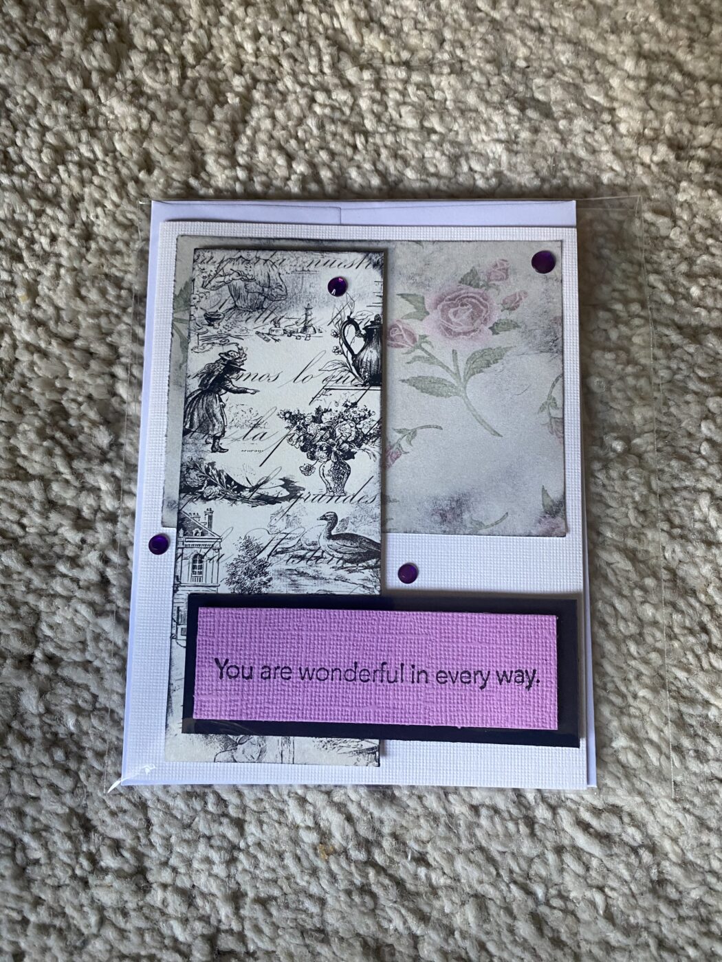 A beautiful card with a beautiful message, this hand-made card uses a combination of mixed media, gem stones, ribbon, and a stamped saying. Printed on quality card stock. Watercolour additions and layers adds to the beauty of this piece. A special way to show someone you care with a piece that was made with care and love. Blank inside so you can customize your own sentiment. Includes an envelope.